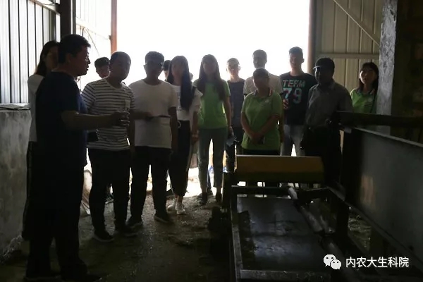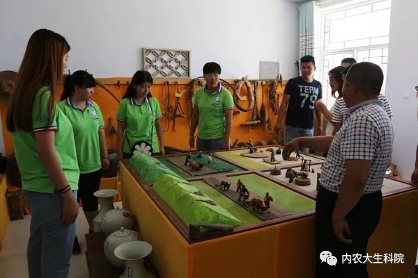 首先,张站长与闫站长带领实践队员观摩了康福肉牛标准化育肥基地及达茂旗丰域农牧业专业合作社,大家了解到丰域农牧业专业合作社于2016年确定为乌克镇套马沟村精准扶贫结对帮扶单位,合作社拟通过在套马沟村原址开展废弃土地复垦,发展养殖业,种植业,旅游观光业等特色产业使周边农牧民收益,解决了多人就业问题。实践队员们还观看了工作人员给牛人工授精的全过程,与工作人员积极沟通交流。随后,实践队来到了天喜休闲农牧业基地,感受当地农耕文化,在工作人员介绍下认识了一些农耕工具。