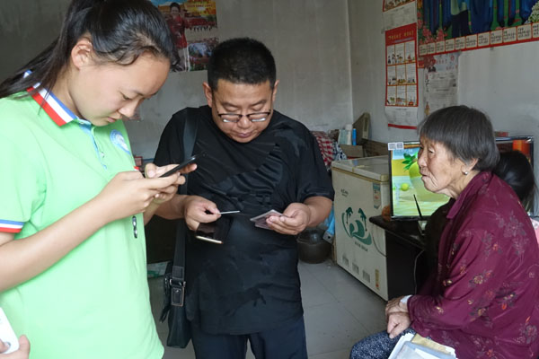 在驻村干部和村长的带领下,实践团队分为四个小组,根据当地扶贫办给出的贫困名单走入贫困户家中,进行网上入户工作。在入户过程中,四个小组的成员在工作过程中细心认真,一丝不苟,对于老人的疑问,更是耐心讲解,细致入微。经过一上午的实践工作,贫困户都已成功入户注册成功。实践队员通过与老乡交流深入调研了当地的贫困现状,以及造成贫困的原因,实地感受到了乡村振兴战略实施和农民脱贫致富的必要性和重要性,同时,调研走访的结果,也为实践队员设计扶贫方案提供了基础数据和基本资料。