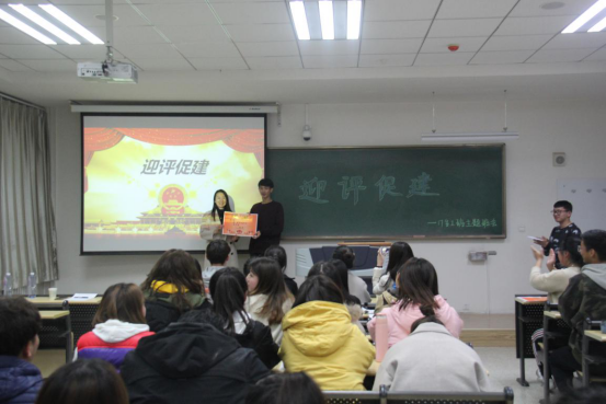 11月11日晚,17级生工一、二班于南教A207开展“迎评促建”主题班会。生科院员工工作办公室辅导员王伟兰,生工一、二班班主任杨丽华,本科生第一党支部书记朱梦,本科生第一党支部组织委员吴海杰,辅导员高凤,17级生工一、二班全体同学积极参加此次班会。