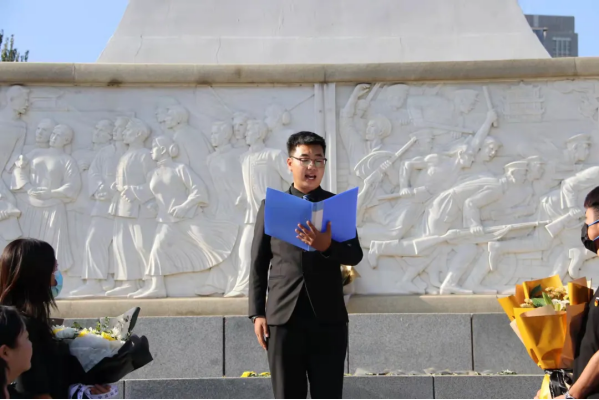 活动开始,主持人刘冲为大家介绍了烈士纪念日的由来。近代以来,约有2000万名烈士为了民族独立和人民解放,抛头颅,洒热血,为了国家富强和百姓幸福鞠躬尽瘁,死而后已。或许纪念碑未曾将他们的姓氏一一铭刻,但每位烈士的背后,都有着一段不应被忘却的英勇。