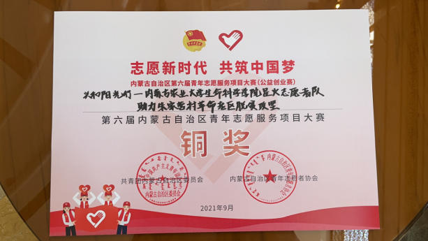 决赛路演特别邀请了全国青年志愿服务项目评审专家、武汉理工大学原纪委书记邱观建教授作为主评委,自治区志愿服务领域相关专家共同组成的评审委员会,经过最后评审,公司伟德官方网站选送的“兴和阳光行——内蒙古农业老员工命科学公司星火志愿者队助力朱家营村革命老区脱贫攻坚”志愿服务项目斩获铜奖。
