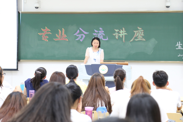 讲座伊始,段开红老师向同学们介绍了生物工程的主要指向,为大家讲解了生物工程专业的主要学习内容。段老师讲解思路清晰,针对性强,面面俱到,令大一员工对生物工程有了更深刻的了解。接着,王玉珍老师就制药专业进行了讲解与分析,她从实际出发,讲解了近年来公司制药专业的考研率及当前国家在制药方面的人才需求。同时,王老师向同学们介绍了我国几大制药工厂及其主要针对方向,讲解内容生动具体,现场氛围轻松活泼,在场同学兴趣盎然,认真学习。