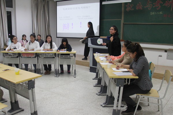 活动最后,生科一,二班班主任孟建宇,肖红梅两位老师对本次辩论作出了点评和总结,老师们对于此次辩论赛给予了高度评价,对同学们的优秀表现感到非常欣慰,并且教育同学们,每个人选择的道路不同,所以面对考研还是就业的抉择也不同,但是无论未来如何发展,都要掌握扎实的知识,将理论与实践相结合,提高综合能力,长知识,长才干。