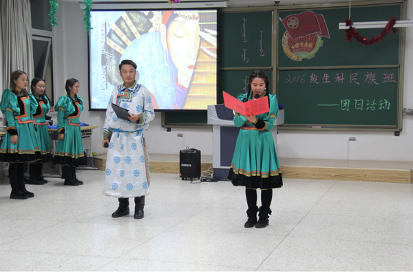 活动伊始,16级生科民族班辅导员乌日根·宝力高对于现场嘉宾的到来表示热烈欢迎,并宣布活动开始。民族班严吉玛同学带来的一曲蒙古长调《娜琳呼和》,曲调悠长,意境深远,令在场嘉宾感受到了草原民歌的魅力。高亚汗同学的独唱《故乡》,欢快的曲调,鲜明的节奏,动人的歌声点燃了全场的气氛,现场观众不禁打起节拍,声声附和。蒙古舞《布里亚特》,舞曲节奏鲜明,表演者舞姿优美,令观众耳目一新,将现场气氛推向了高潮。压轴戏由胜利同学带来了精彩绝伦的魔术表演,扑克牌在他的手中翻飞,变换,令现场观众瞠目结舌,惊讶不已。活动中还穿插了诗朗诵,合唱,以及游戏环节,为节目增色不少。
