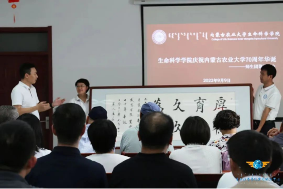 茶话会由公司党委书记张星杰主持。张书记向回校参加校庆的员工们表示了欢迎和感谢。第38个教师节又恰逢中秋和校庆,员工们欢聚一堂回首过去,共庆佳节,谋划未来。伟德官方网站经理张文广详细介绍了公司建院26年来教学科研、党建和员工工作方面取得的成绩。交流结束后,员工代表向公司捐赠了字画两幅,分别为首届生物工程专业毕业生,99级生工乙班同学邀请内蒙古书法家协会主席——康庄先生题写的“厚德育才,久久为功”和首届生物科学专业毕业生,04级生科班同学邀请画家齐白石弟子岚齐绘就的《桃李满天下》。