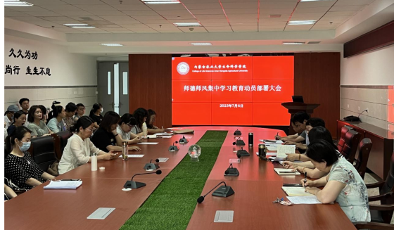 会议传达了在推进主题教育强化师德师风建设专题会议上的重要讲话精神,会议强调要坚持政治引领,强化师德学习教育,让教育者先受教育、让有信仰的人讲信仰,强化师德教育制度和工作落实。要坚持师德违规“零容忍”,严格落实从业禁止制度和教职员工准入查询制度,严查师德违规突出问题,畅通举报渠道,完善学术不端与师德违规共享及处理联动机制。要完善教师培养管理,健全中国特色教师教育体系,推动教师成为数字教育、终身学习的示范者、推动者和践行者。