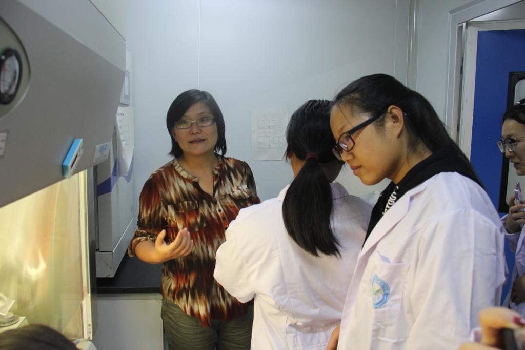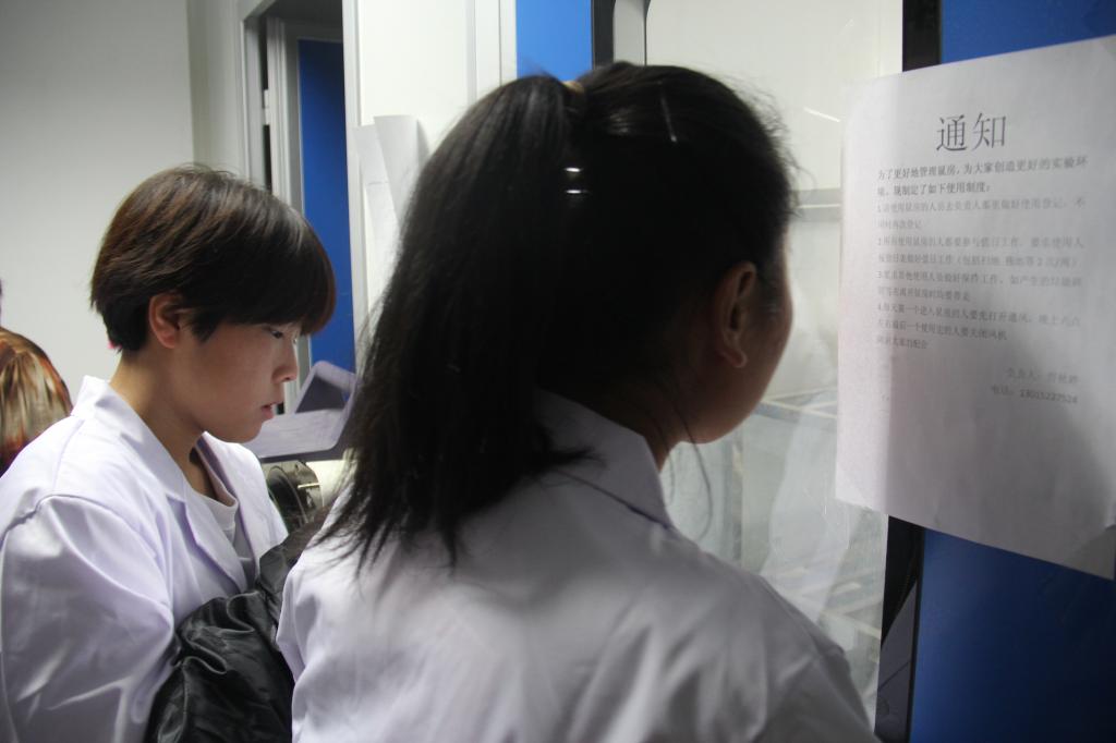 活动伊始,大家来到了万方老师的分子药理实验室,万老师的研究方向为肿瘤新药的研发。老师首先向大家详细的介绍了抗肿瘤实验室。随后,万老师带领大家参观细胞研究室和生物动物房,并向同学们详细讲解了生物安全柜和细胞培养箱的原理和使用方法。参观期间,同学们还与实验室的小白鼠进行了近距离接触。活动最后,万老师耐心的为同学们答疑解惑,并鼓励同学们积极参与到实验研究中。