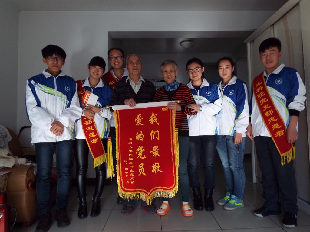 11月23日上午8:00,由支部书记舒立明带领的小组前往老党员黎俊英老先生家中进行拜访,与老党员面对面交谈。同学们的拜访受到了黎大爷一家人的热情接待,黎大爷对于大家的到来表示欢迎,随后便给大家讲述了关于他的故事。在黎大爷出生的那个年代,遭遇了饥荒,生活拮据,直到1946年河南解放,进行土地改革,黎大爷才有机会上学,参加工作,并于1955年12月30日入党。在交流过程中,大家感受到黎大爷是一位和蔼可亲的老人,他身为一名有着60多年党龄的老党员,严格要求自己,以身作则。交流中黎大爷向大家提出了几点希望:“热爱国家,热爱党;善待与尊敬别人,孝敬父母;要做一个有信仰的人,人生得意时不要忘乎所以,失意时要有勇气,勇敢前行。”