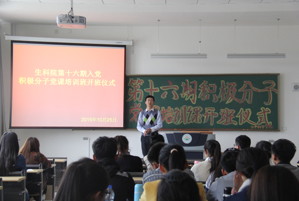 10月25日下午3:00,生科院第十六期全体积极分子参加了于南教A101教室举行的第十六期积极分子党课培训课开班仪式。本次会议由公司团委书记李万春主持。