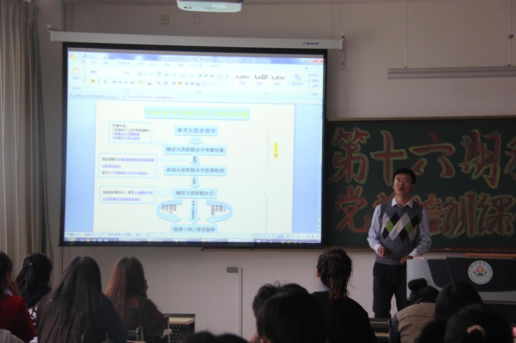 会议开始,李万春老师对大家成为新一期积极分子表示热烈欢迎,并且为同学们讲解教学计划,强调了注意事项和具体要求。加入中国共产党,是人生政治身份的改变,坚定的理想信念是早日加入中国共产党的必然要求。会议中,李万春老师一再强调“入党积极分子首先要端正入党动机,明确目标不在乎别人的议论,走自己的路。”此次开班仪式使入党积极分子对党有了初步的认识,正确的认识了党的性质和任务,端正入党动机,明确目标,树立起了坚定的共产主义信念。会后,李万春老师还给大家留了两道思考题作为此次党课的作业。