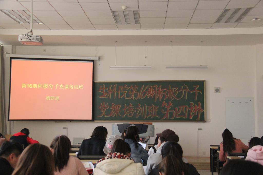 为进一布加强入党积极分子对于中国共产党的深刻认识,11月2日晚上7:00,生科院全体第十六期积极分子于南教103参加第十六期党课培训的第四讲。本次会议以观看视频《筑梦中国》为主。