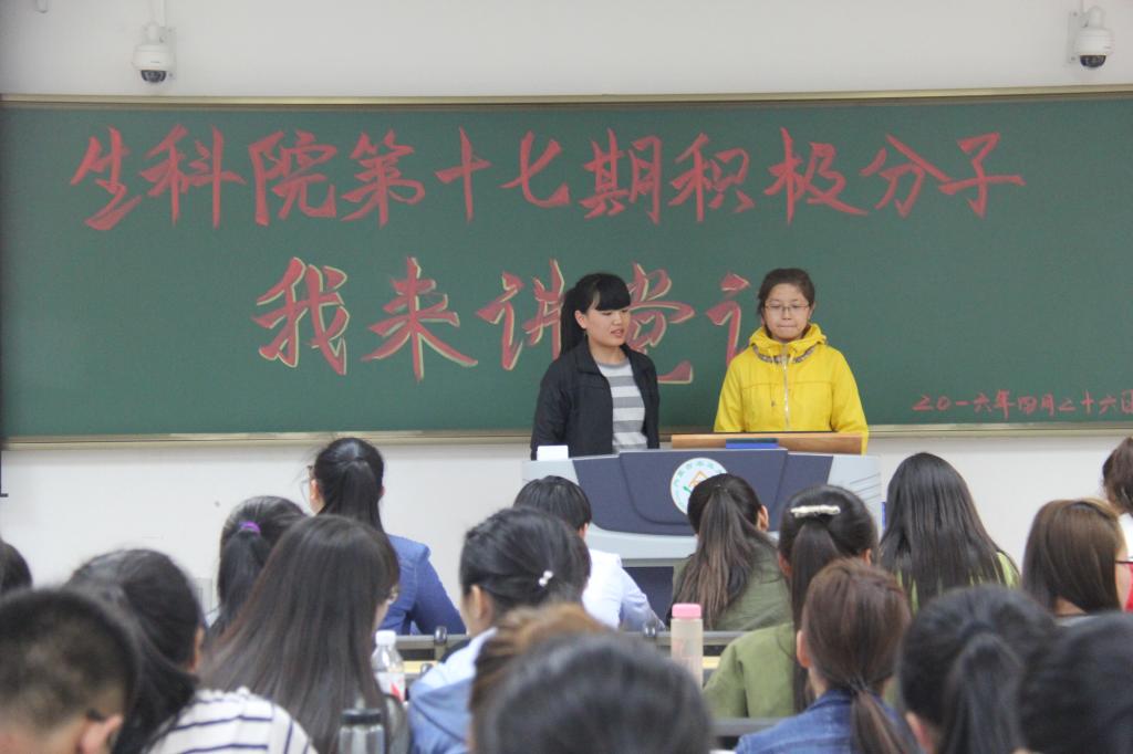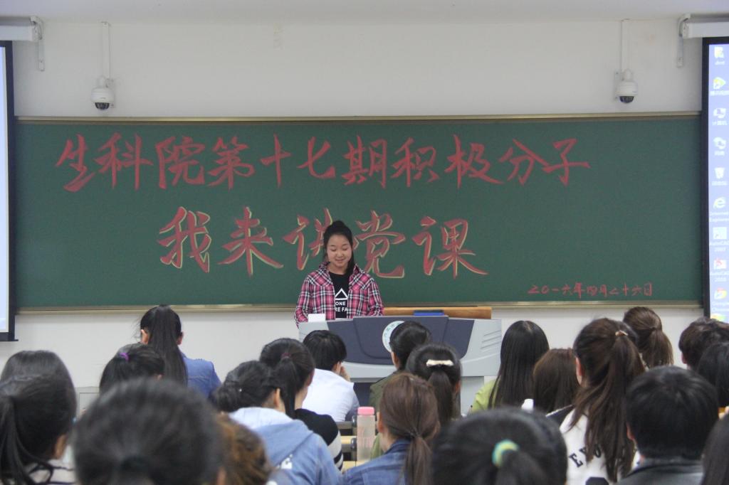 为了使生科院第十七期积极分子加深对中国共产党的了解,增进与中国共产党的距离。4月26日晚上7:00,公司团委员工会组织部于南教A324和326举行了第十七期积极分子“我来讲党课”评比。本次评比邀请公司各员工支部委员作为评委对第十七期积极分子的讲解进行打分点评。
