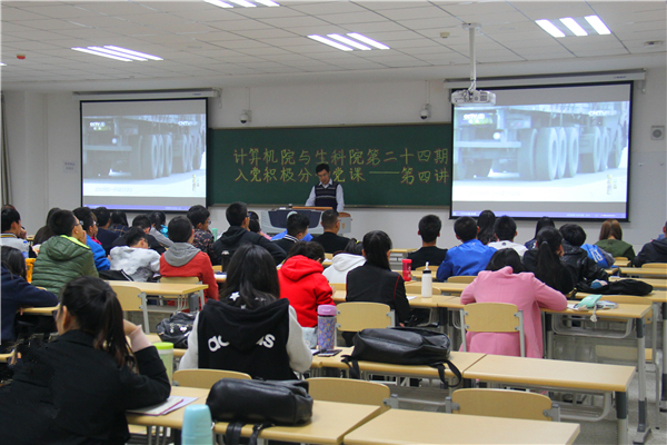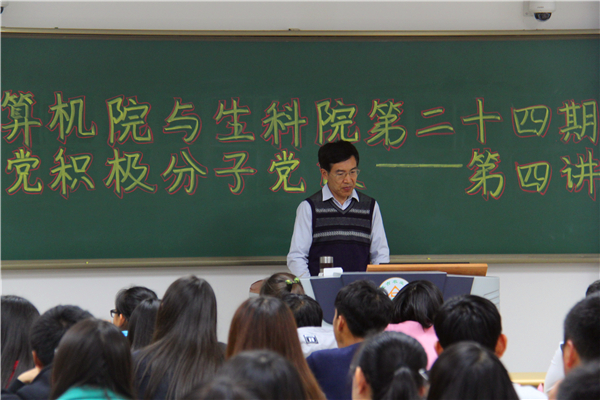 10月21日晚上7:00,“生科院与计算机院入党积极分子党课——第四讲”于南教A326举行。公司组织部副部长赵云虎老师担任主讲人,生科院与计算机院全体入党积极分子参加。