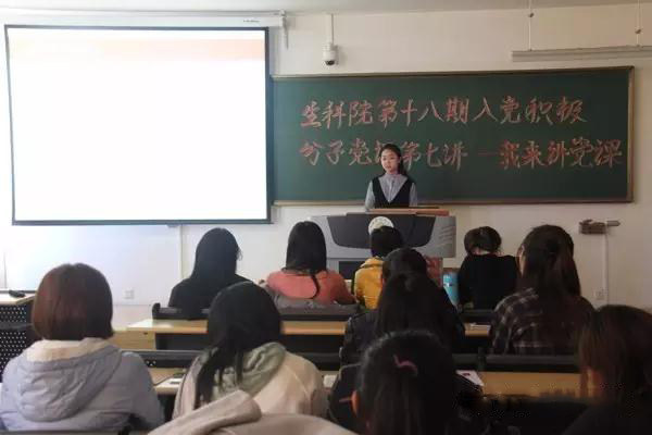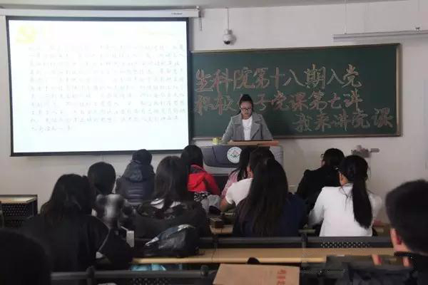 10月30日下午3:00,生科院于南教A209、219开展第十八期积极分子党课第七讲---我来讲党课。生科院团委副书记徐美丽,各党支部支委杨小荣,李欣,张婧,徐慧欣,于景宛,组织部部长张婷婷,汪昕珑出席并担任评委,生科院第十八期积极分子全体参加。