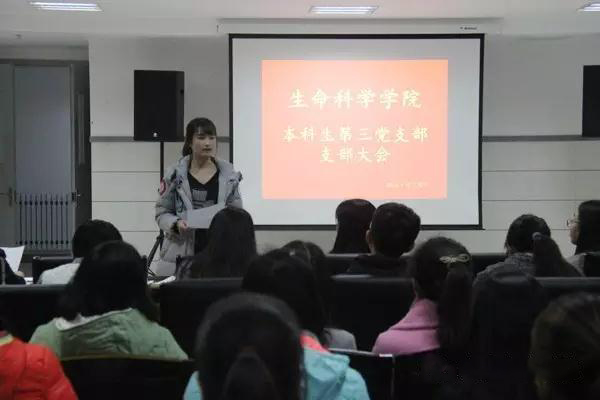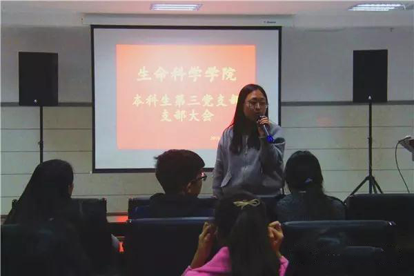 10月30日晚上7:00,生科院本科生第三党支部于生科楼418召开支部大会。公司团委副书记李万春,本科生第三党支部书记米丽媛,组织委员张靖,宣传委员杨小荣与会,第三党支部全体人员参加本次会议。