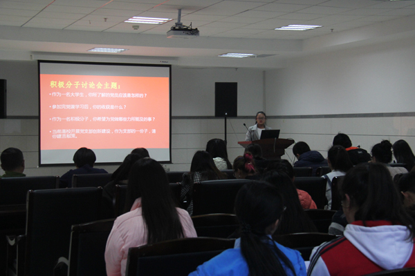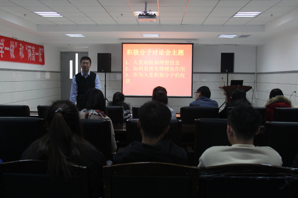 为了更好的了解生科院第十八期积极分子党课的学习情况,同时为建设好学习型党组织,使入党积极分子更加贴近中国共产党,并端正入党的动机,确立奋斗目标,提高自身的党性修养。2016年11月08日下午2:30,公司本科生第一党支部在生科大楼418,召开第一党支部积极分子讨论会,公司的党委副书记任燕刚老师,微生物与发酵工程教工支部书记孟建宇老师,李国光老师和李琦老师,本科生一支部的党员,预备党员以及第十八期入党积极分子参与了本次讨论会。