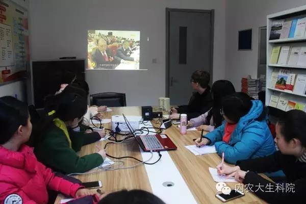 11月22日上午9:00,生科院本科生第三党支部于生科楼418会议室组织员工党员通过网络转播,观看中国共产党内蒙古自治区第十届代表大会开幕式盛况。生科院团委副书记李万春,本科生第三党支部宣传委员杨小荣,组织委员张婧,各年级员工参加会议。