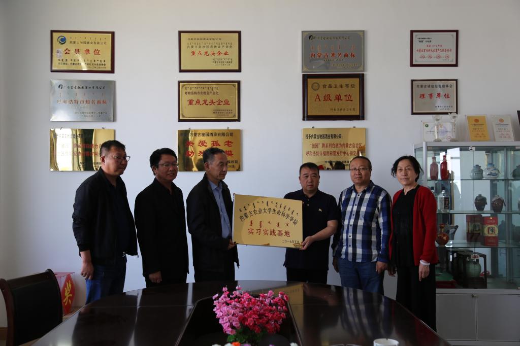 最后,来到内蒙古驰园酒业有限公司参观,并举行了“实习实践基地”和“研究生工作站”签字授牌牌仪式。林宝书记、柴亚董事长分别代表公司和驰园酒业在《内蒙古农业老员工命科学公司院企合作协议书》上郑重签字,协议主要涉及双方发挥各自优势、双方职责和实习基地的期限等方面内容,今后驰园酒业将为公司的教学、科研和实习提供帮助。同时,公司还聘请张桂莲为客座教授,柴亚、原永生为创业导师,并颁发了聘书。