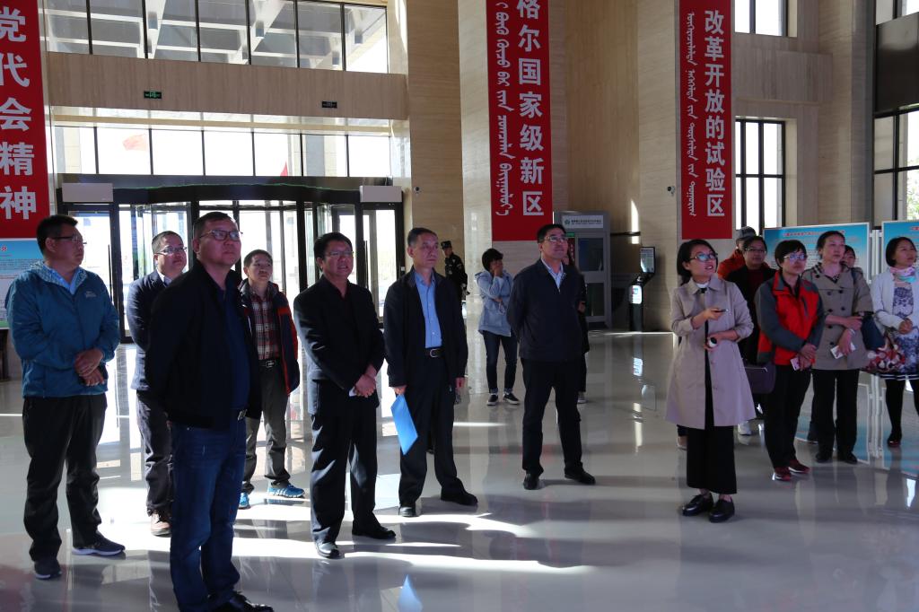考察团一行首先参观考察了和林格尔新区总部展厅。在新区展厅,新区党政综合办郭菊颖详细介绍了新区的基本情况和发展规划。并对李纪恒书记提出的:“建设和林格尔国家级新区,是自治区党委审时度势作出的重大战略决策,是未来内蒙古经济社会发展的希望点、增长点、亮丽点,要以世界眼光、战略思维规划建设,使新区成为内蒙古未来10年乃至更长时期经济增长的新引擎、转型升级的大平台、“五化”协同的支撑点、改革开放的试验区”的指示精神进行了重温和回顾。
