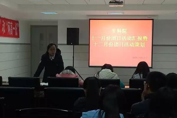 为了解生科院各班级十一月份团日活动的开展情况及十二月份团日活动的策划工作进程,12月3日晚上7:00,生科院于生科楼418 举行“十一月份团日活动汇报暨十二月份团日活动策划”主题会议。生科院各党支部代表米丽媛,王丹,于景苑,员工会分团委副书记徐美丽出席担任评委,公司14、15、16级团支书积极参加。