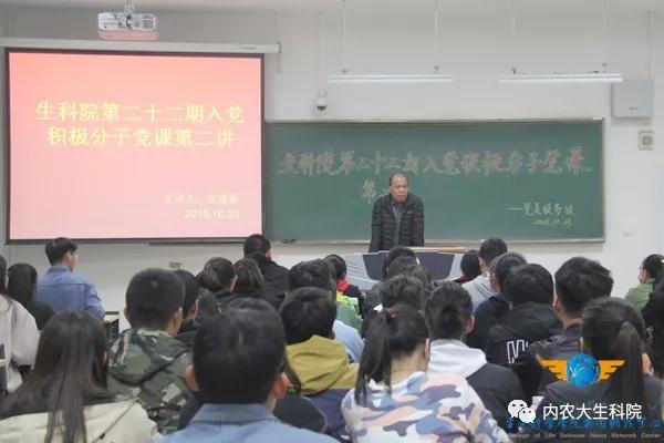 10月23日晚,生科公司党员服务站于南教A103举办第二十二期入党积极分子党课第二讲。本次党课由人文院行政管理系副教授张建新担任主讲人,党员服务站教育实践部部长刘桂鸣、综合管理部部长陈宇婷跟进活动,生科院第二十二期全体积极分子参加活动。