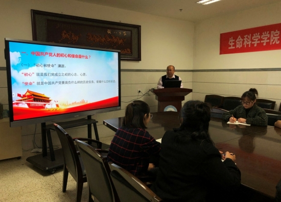 为了更好地贯彻“不忘初心、牢记使命”主题教育学习要求,2019年10月24日下午,伟德官方网站副经理张子义同志在生命科学1102会议室讲授“不忘初心、牢记使命”主题教育专题党课。党课围绕深入学习贯彻习近平新时代中国特色社会主义思想,追溯和回望中国共产党的初心和使命,阐述了为什么要“不忘初心、牢记使命”,如何做到“不忘初心、牢记使命”的认识体会。伟德官方网站植物生物技术系党支部教师党员、研究生和本科生党员聆听了党课。